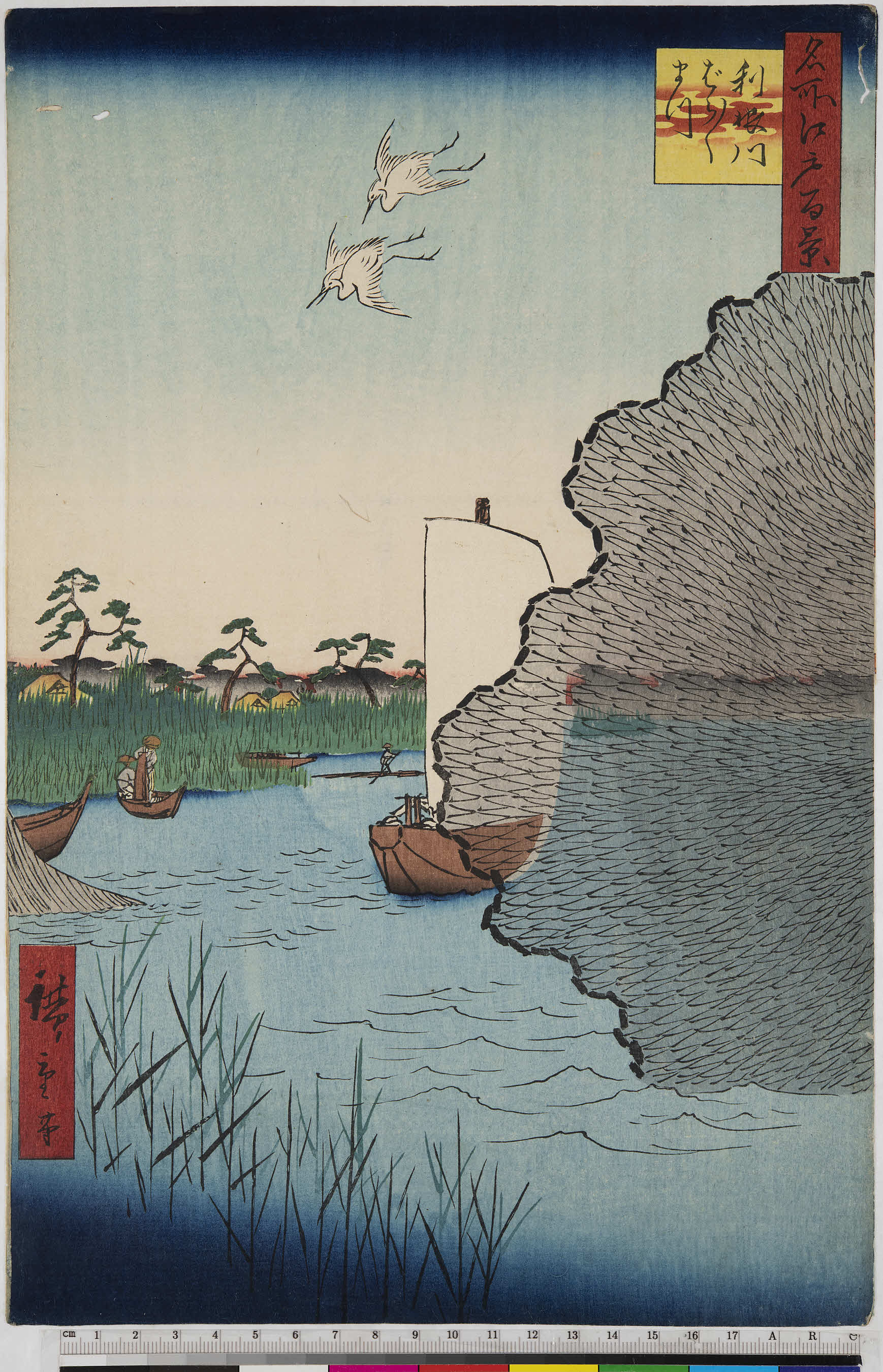 作品名:  「名所江戸百景」  「利根川 ばら/\まつ」