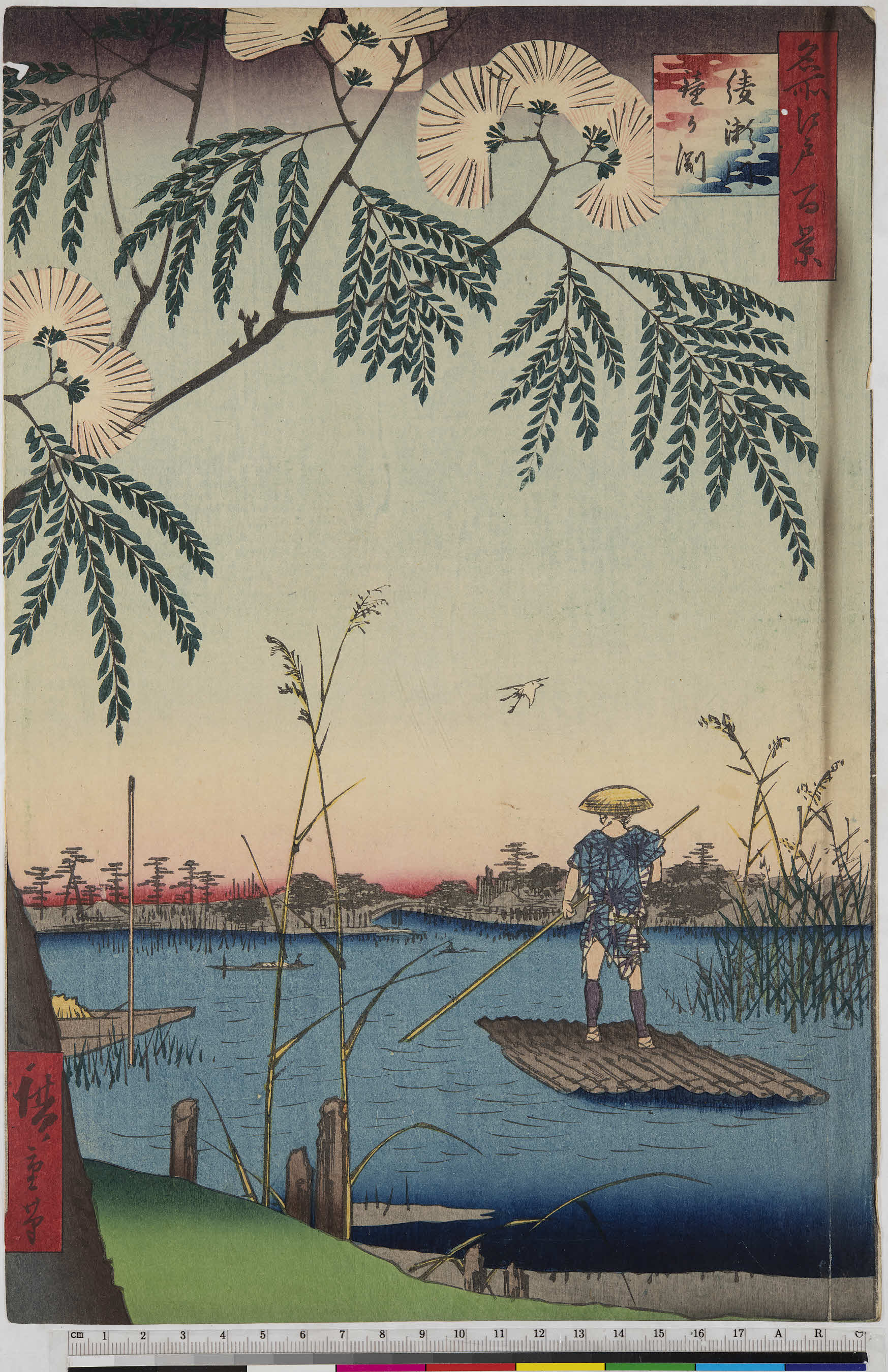 系統分類:  名所絵   画題:  あやせ川(目録夏の部)  鐘ヶ淵  合歓の木
