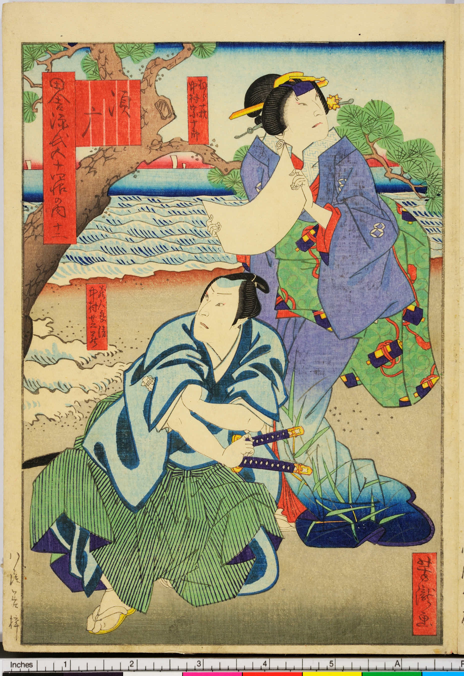 作品名:  「田舎源氏五十四帖の内」  「十二」「須磨」「むら荻 中村宗十郎」「蔵人良清 中村芝蔵」