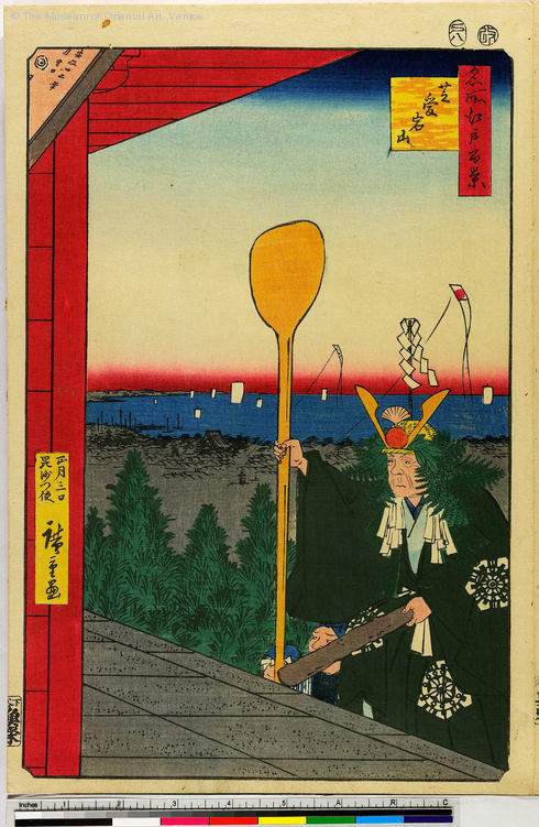 系統分類:  名所絵   画題:  芝あたご(目録春の部)  強飯式  毘沙門使