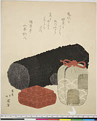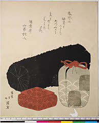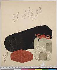 | 分類 摺物 狂歌 器物 画題 茶道具 茶入 炭 シリーズNo. 名 資料部門 浮世絵 | ||||