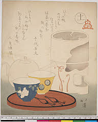 | 分類 摺物 狂歌 器物 画題 土瓶 茶碗 福茶 シリーズNo. 名 五行 資料部門 浮世絵 | ||||