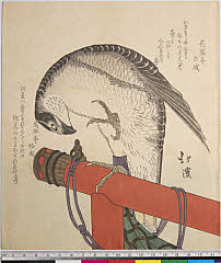 | 分類 摺物 狂歌 花鳥画 画題 鷹 シリーズNo. 名 資料部門 浮世絵 | ||||