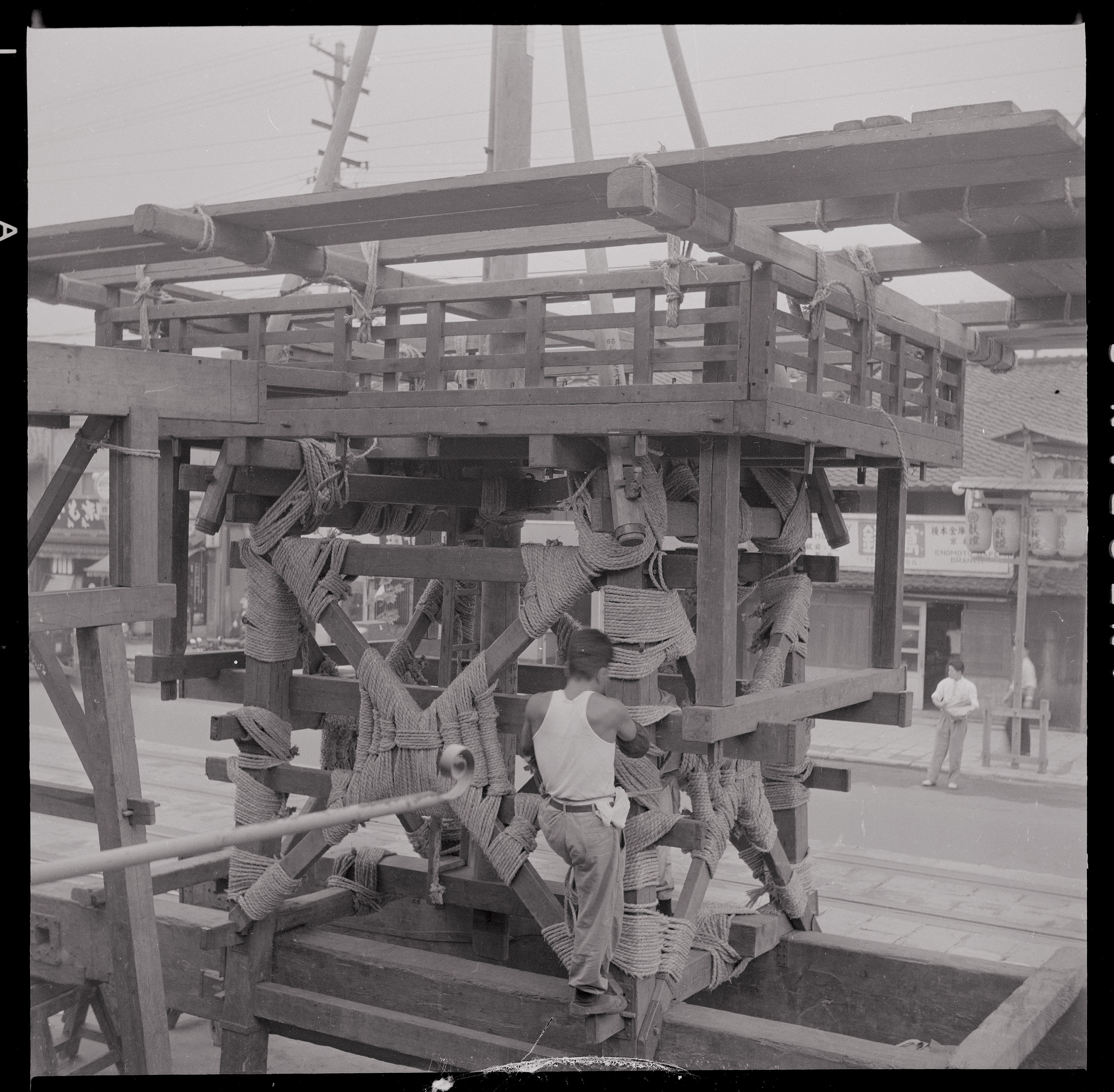 書込み: 祇園会(祇園祭)、月鉾組立作業(南面中ほど)