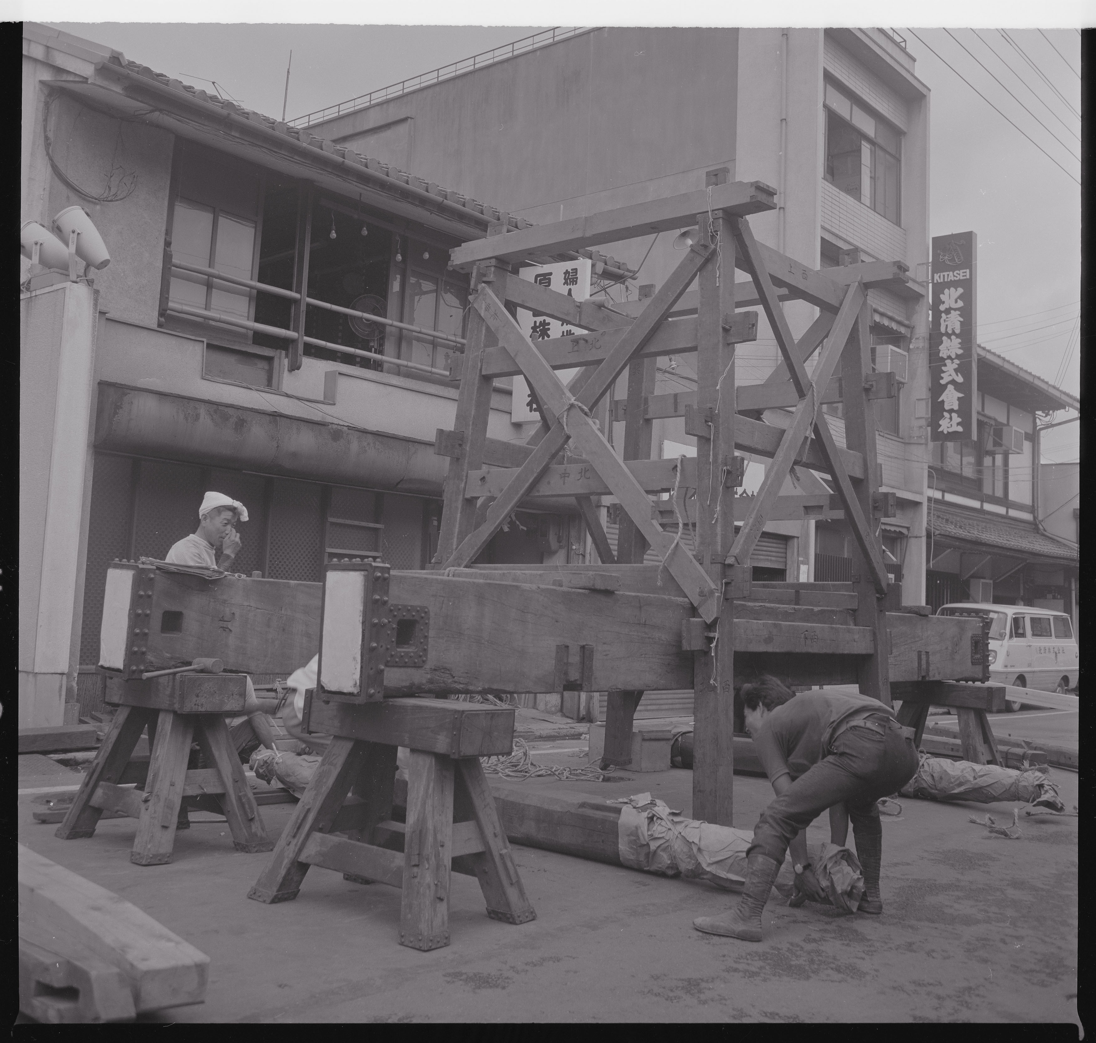 被写体:  祇園会(祇園祭)、船鉾鉾建、石持、下層櫓組立 撮影者:  近藤豊