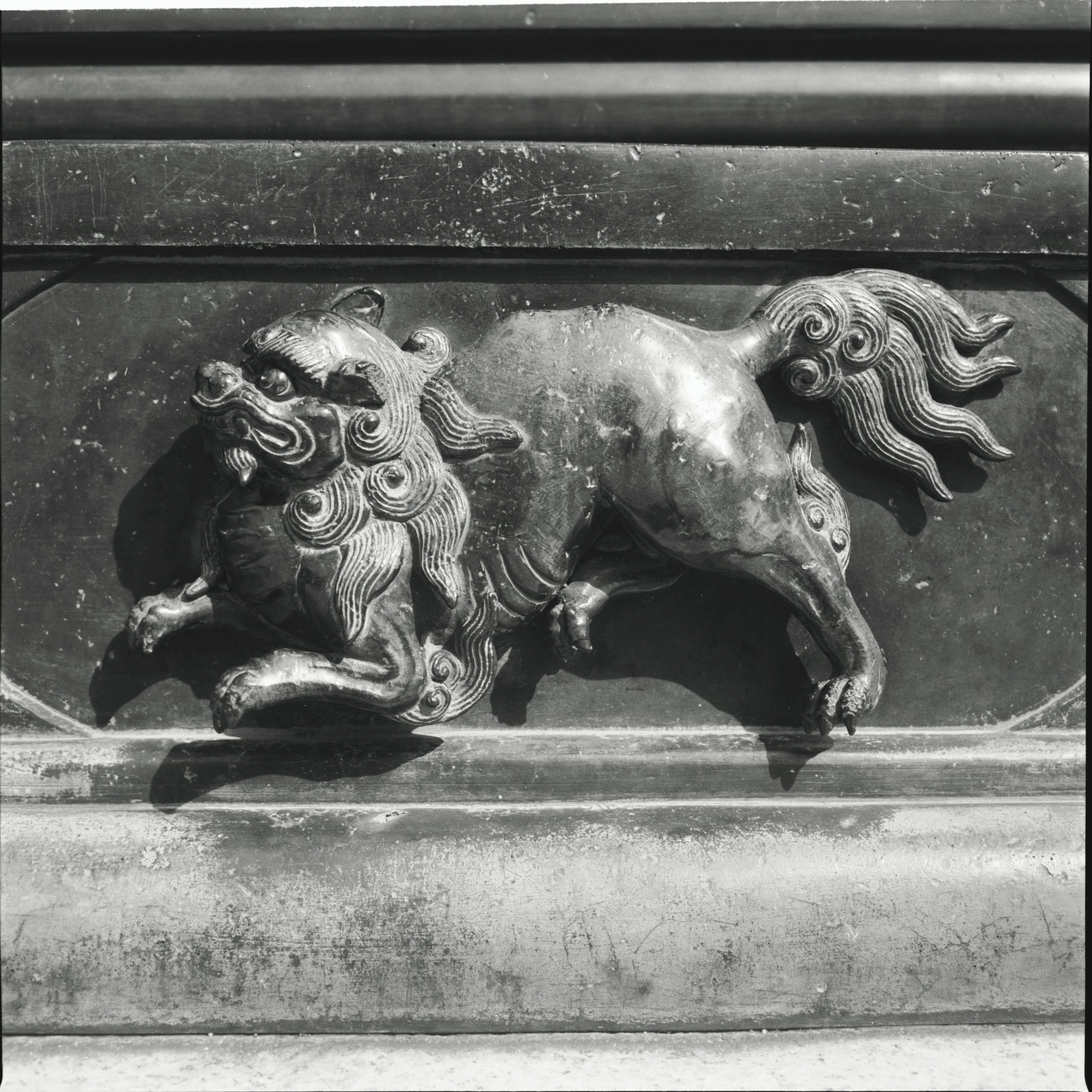書込み: 法隆寺大講堂前銅灯基礎面獅子