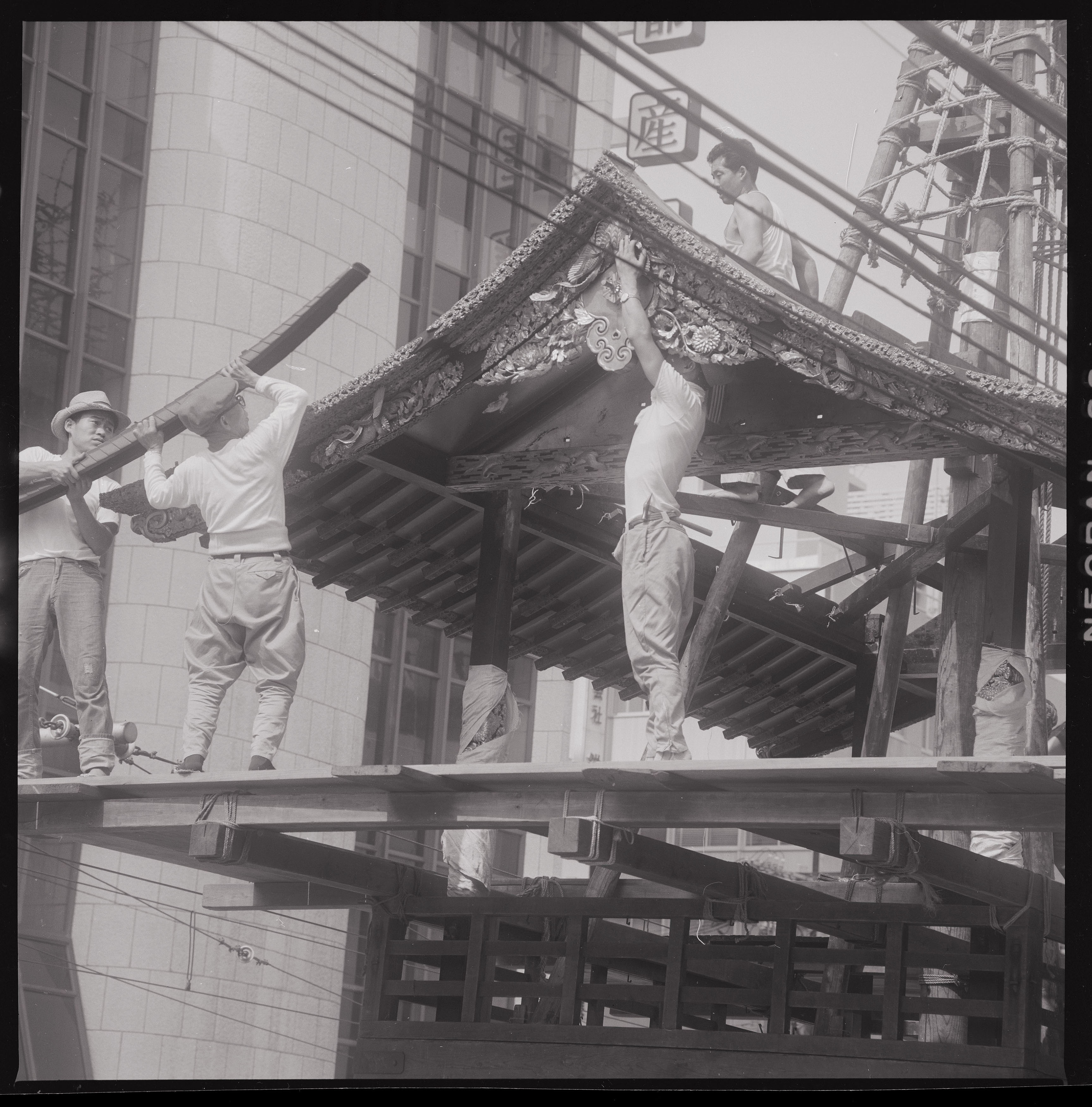 書込み: 祇園会(祇園祭)、函谷鉾鉾建中東北面(簑甲部材取付了)