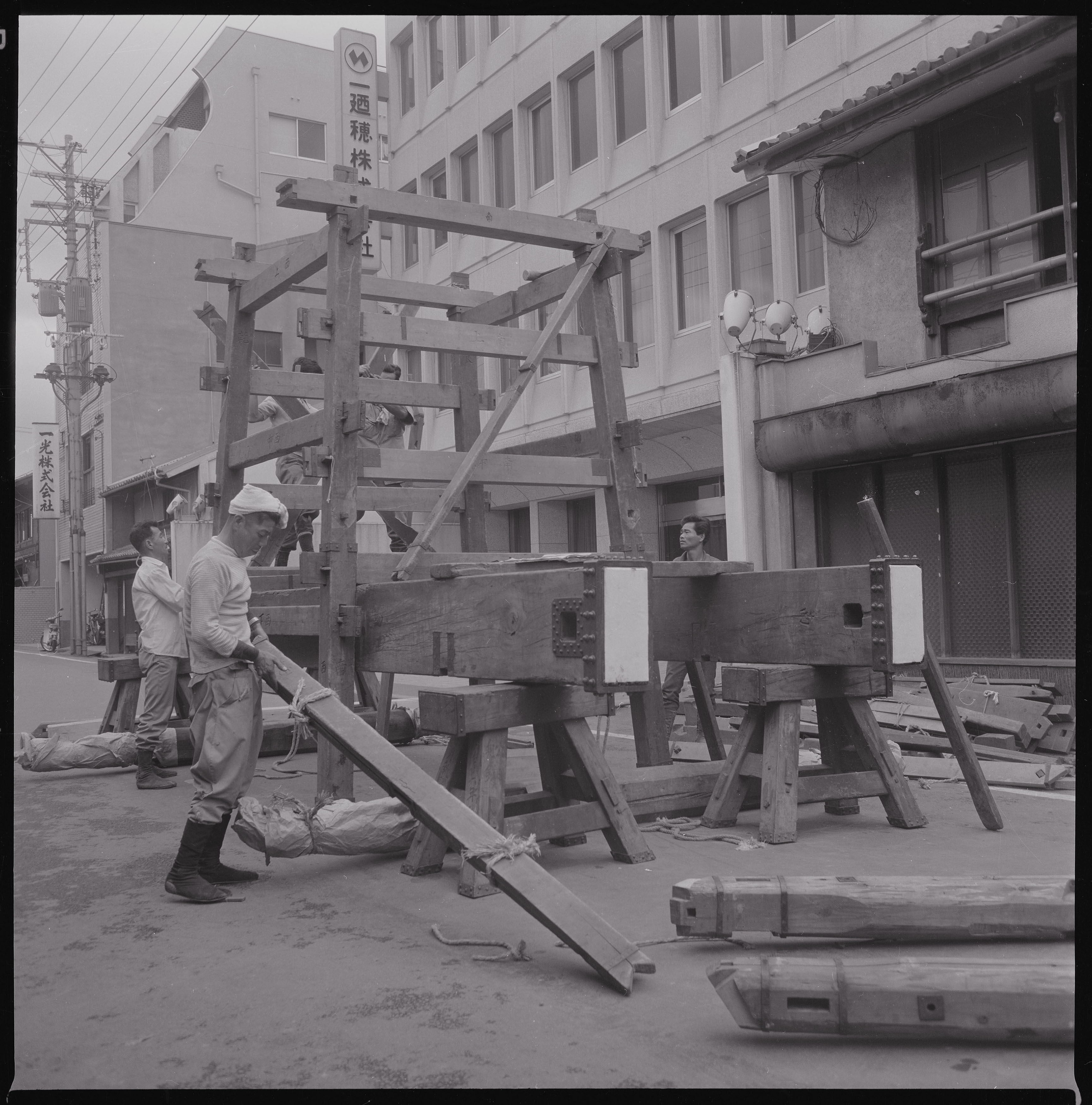 被写体:  祇園会(祇園祭)、船鉾下層、上層組立、舟縁構成 撮影者:  近藤豊