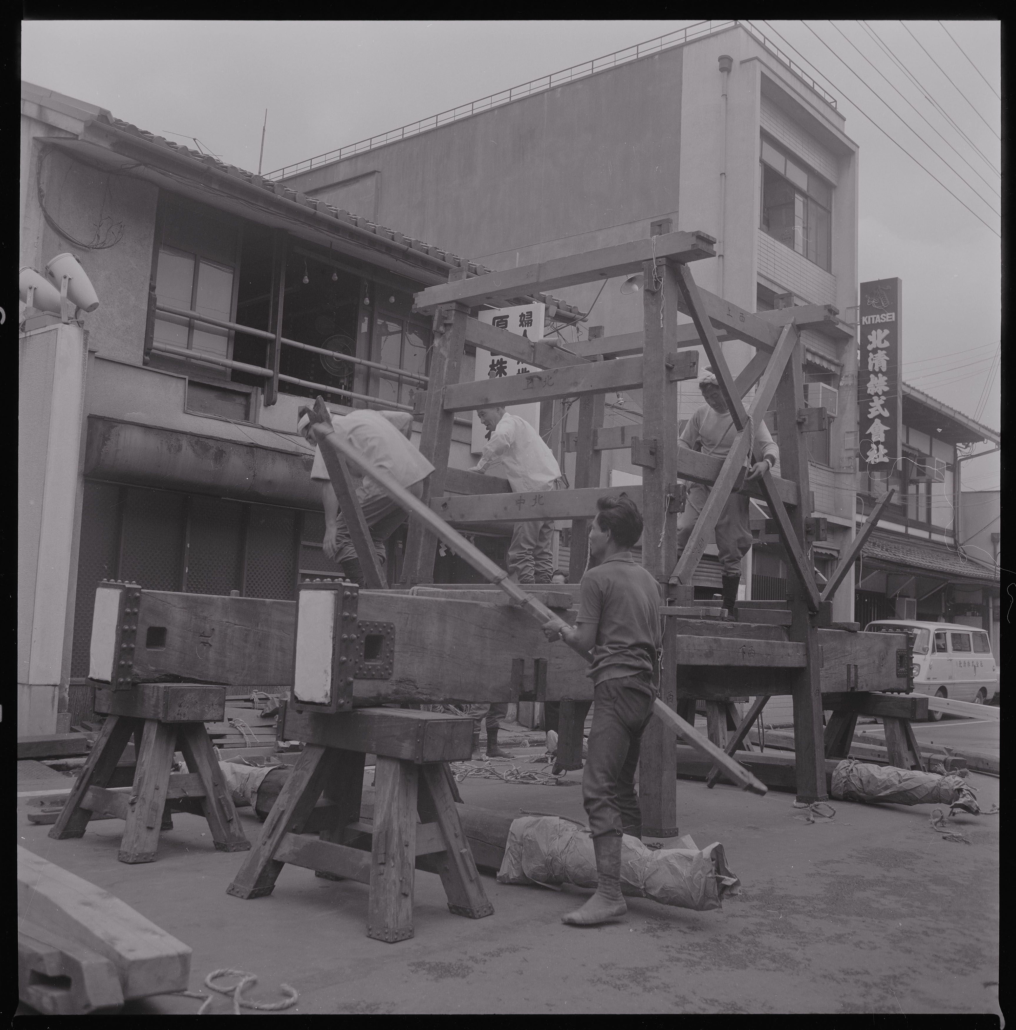 被写体:  祇園会(祇園祭)、船鉾鉾建、石持、下層櫓組立 撮影者:  近藤豊