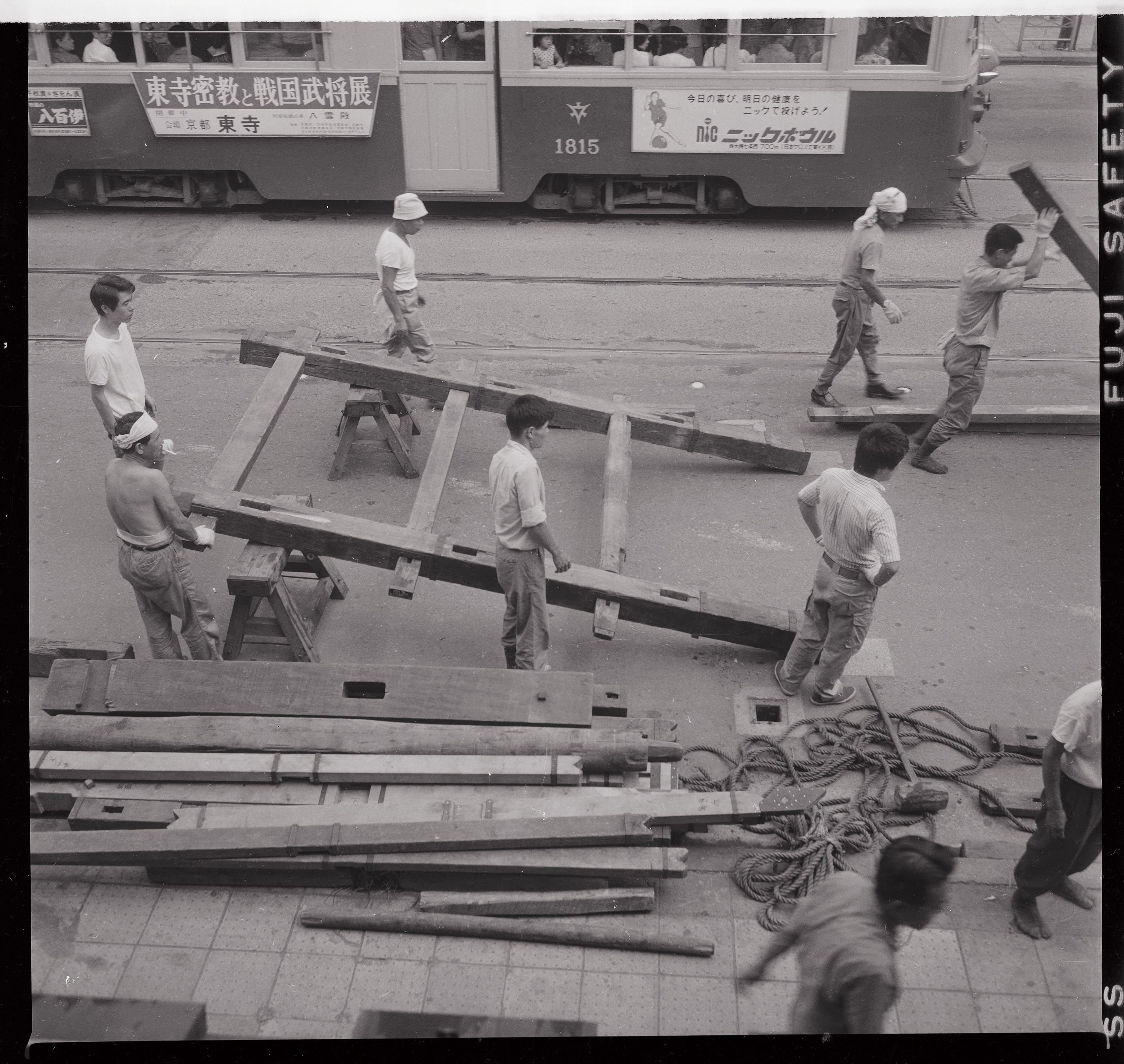 書込み: 祇園会(祇園祭)、月鉾鉾建下層櫓部材持出組立其十四