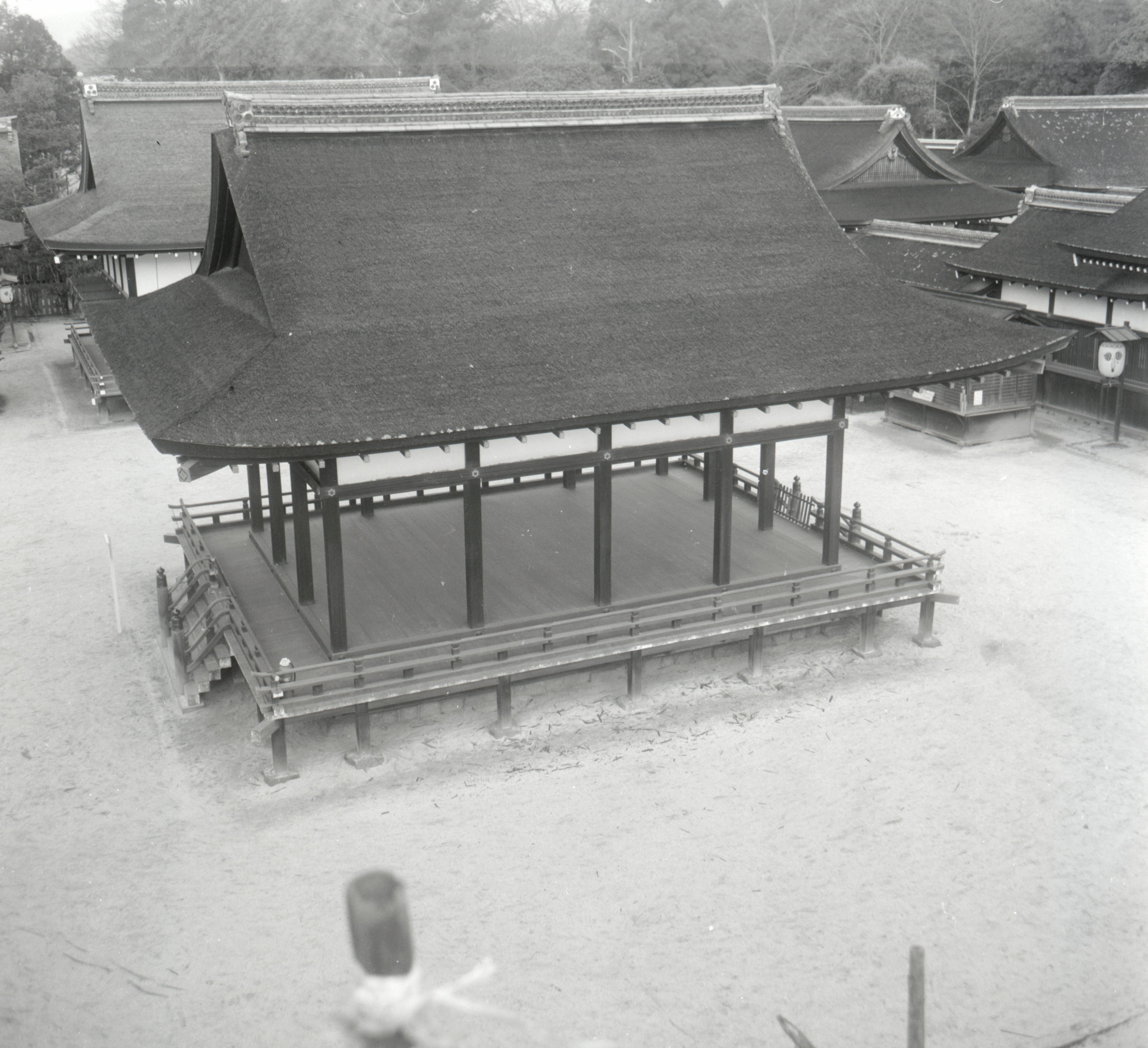 書込み: 賀茂御祖神社舞殿東面(橋殿西妻獅子口上に写真機を置き撮)