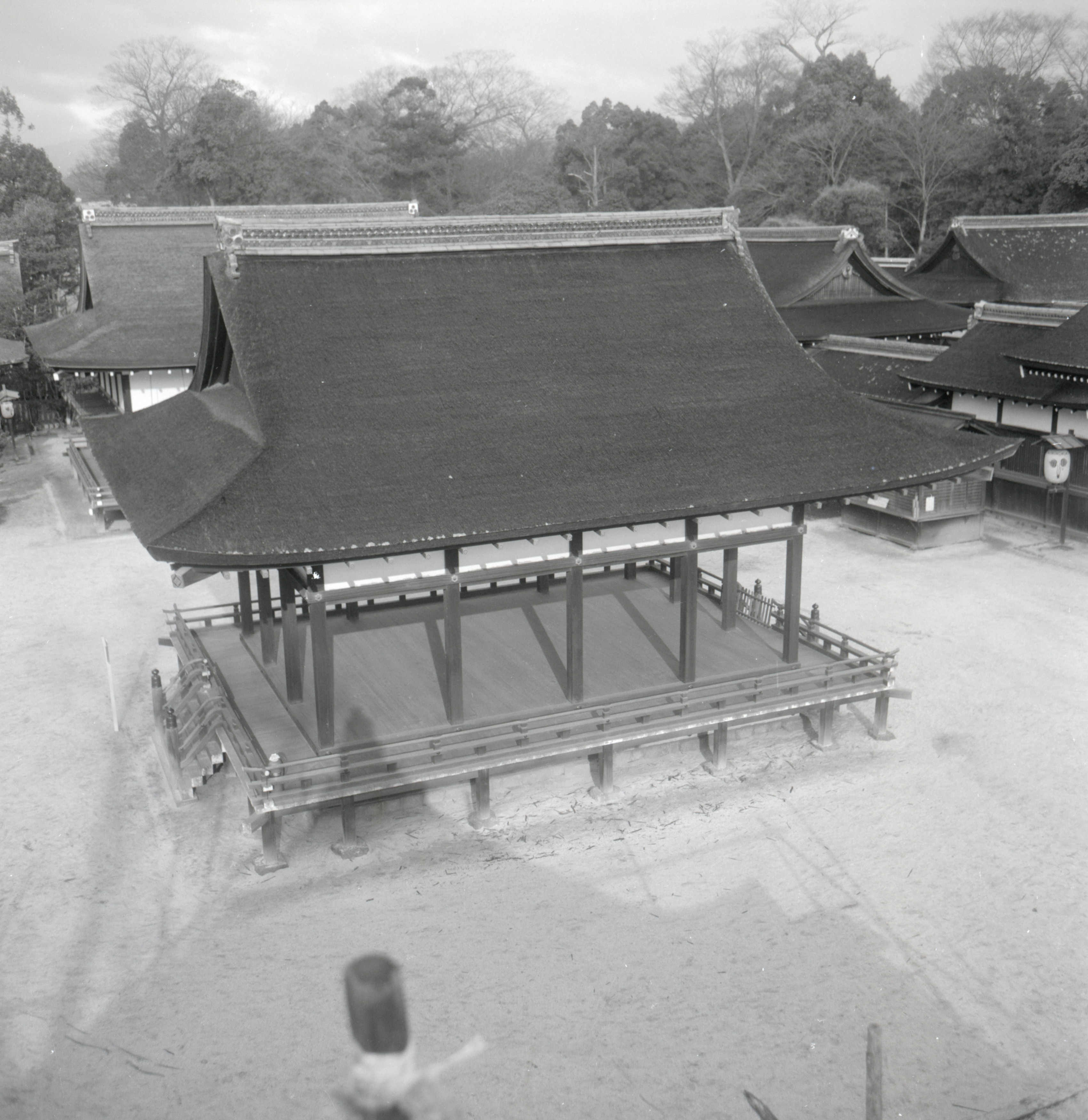 書込み: 賀茂御祖神社舞殿東面(橋殿西妻獅子口上に写真機を置き撮)