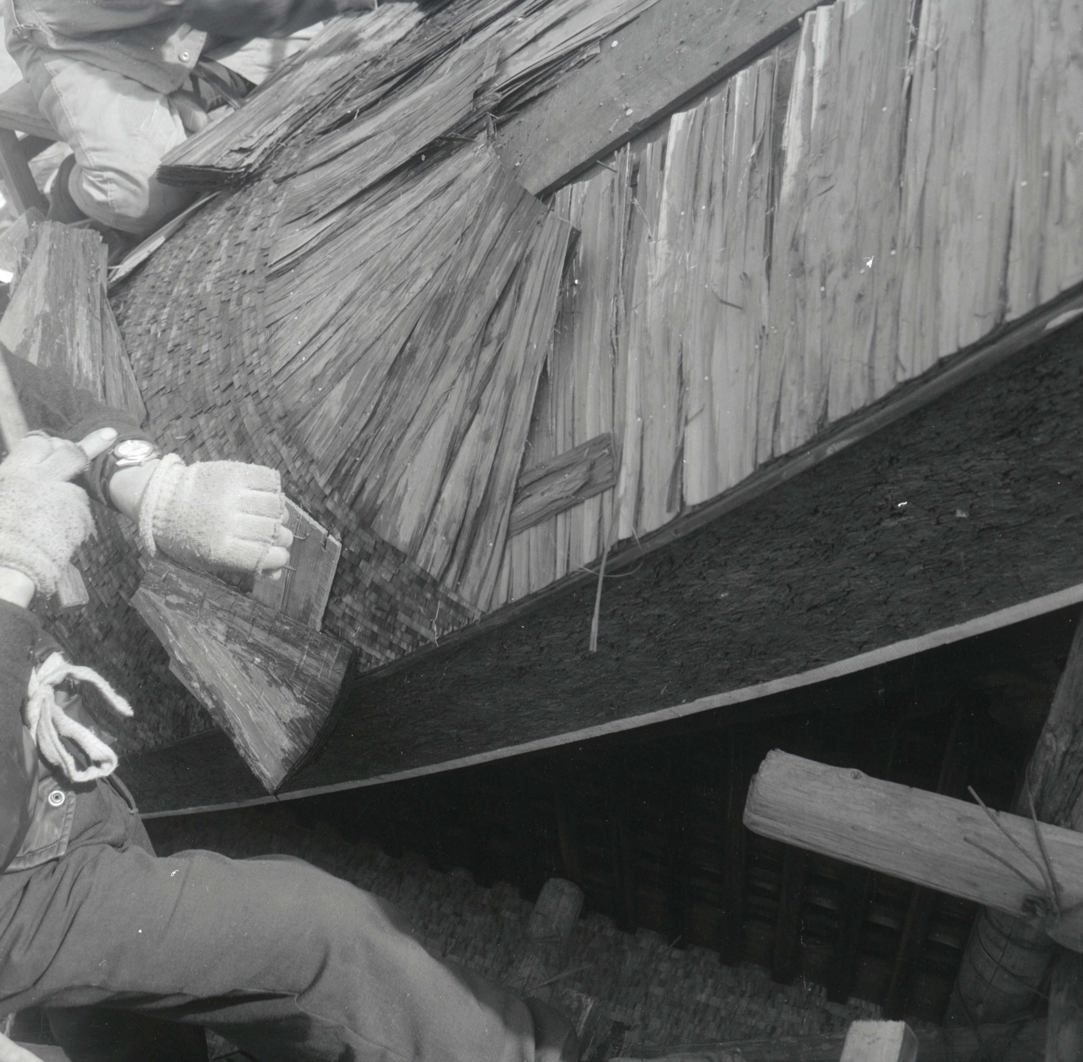 書込み: 賀茂御祖神社橋殿西妻蓑甲葺上げ中