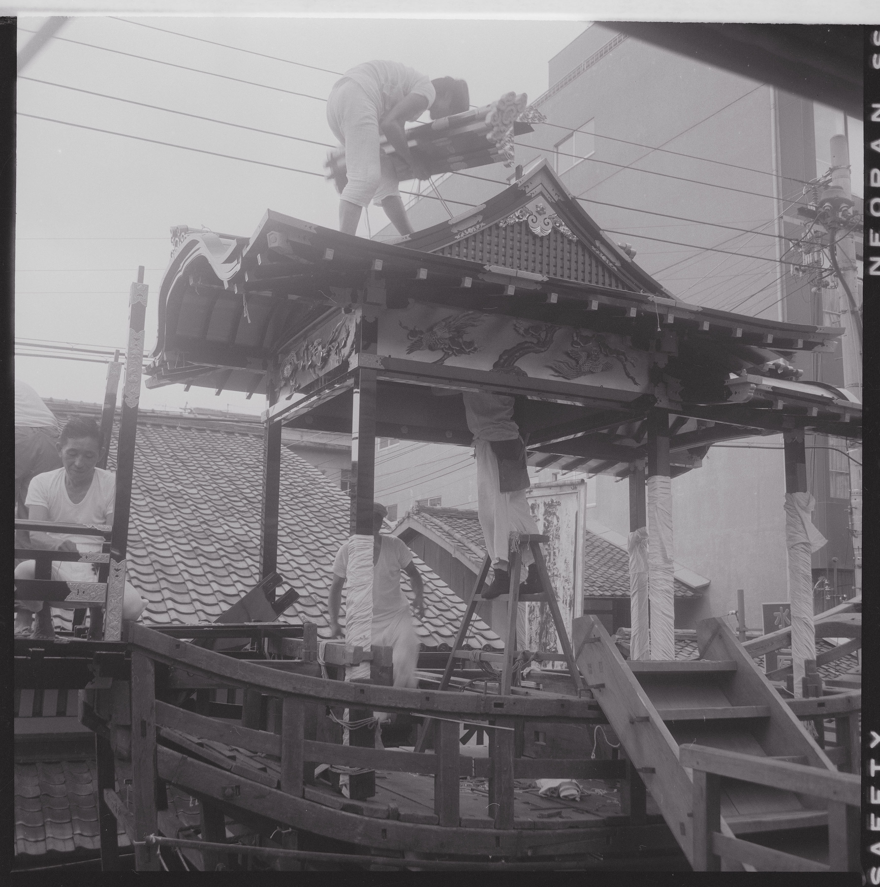 書込み: 祇園会(祇園祭)、船鉾屋形組立(大棟の箱棟取付)