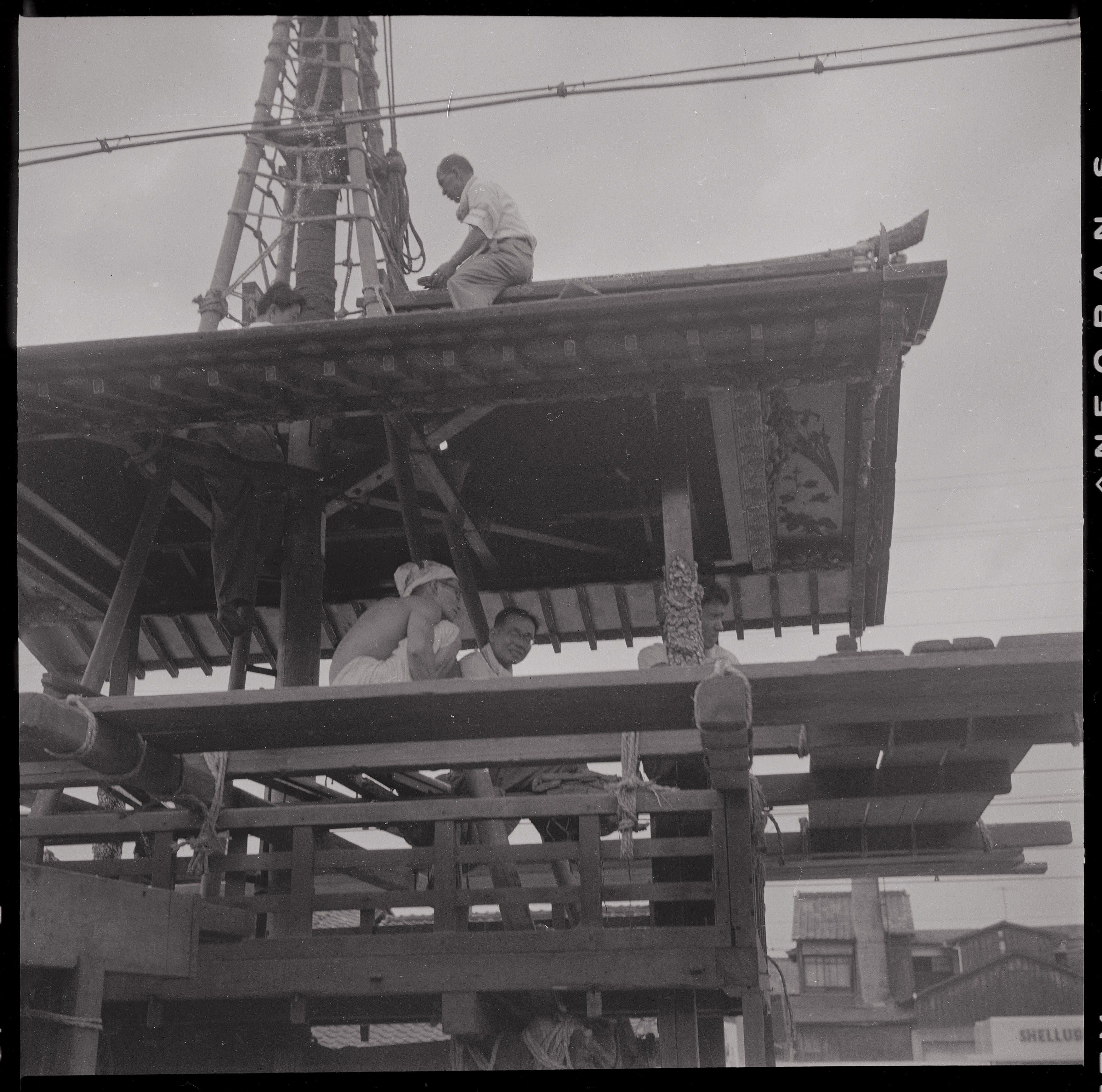 書込み: 祇園会(祇園祭)、月鉾組立作業(南面)