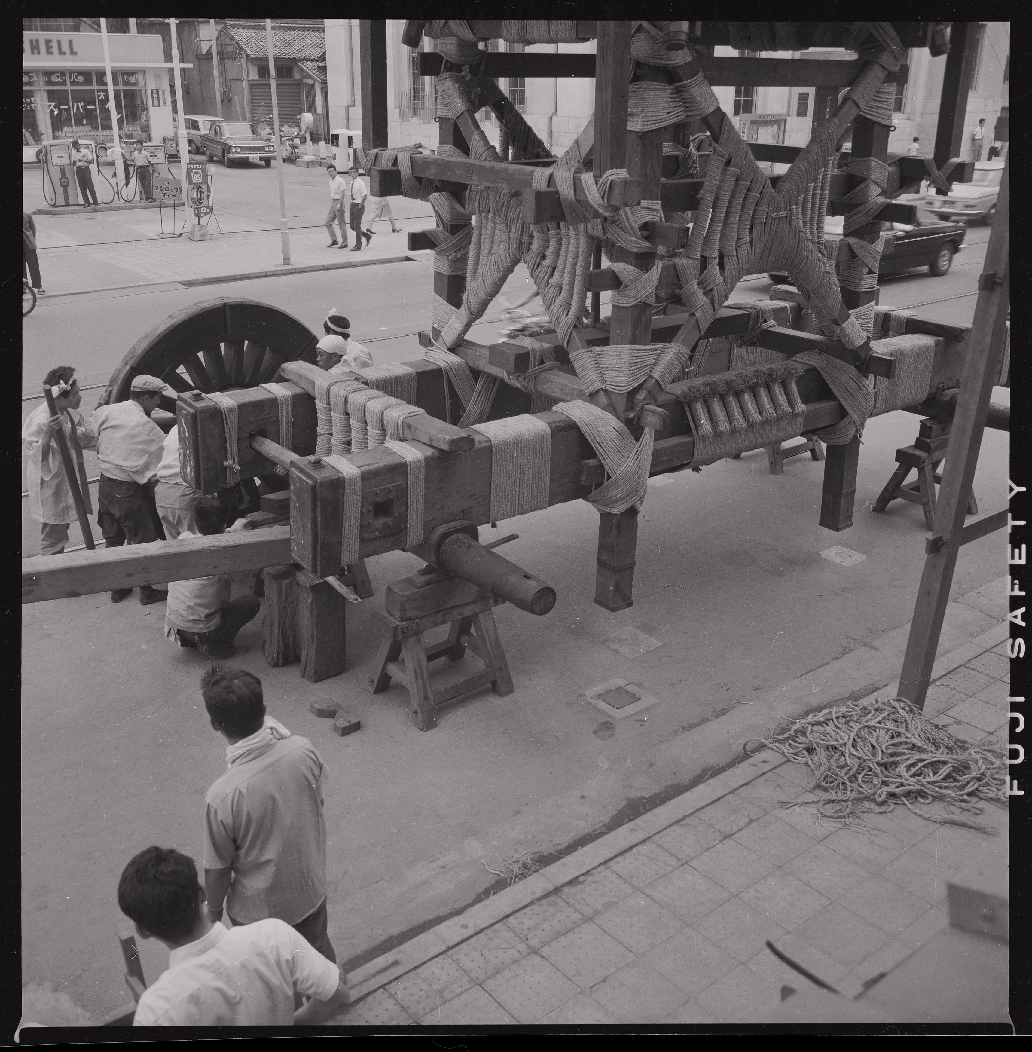 書込み: 祇園会(祇園祭)、月鉾西南面(後輪取付中)