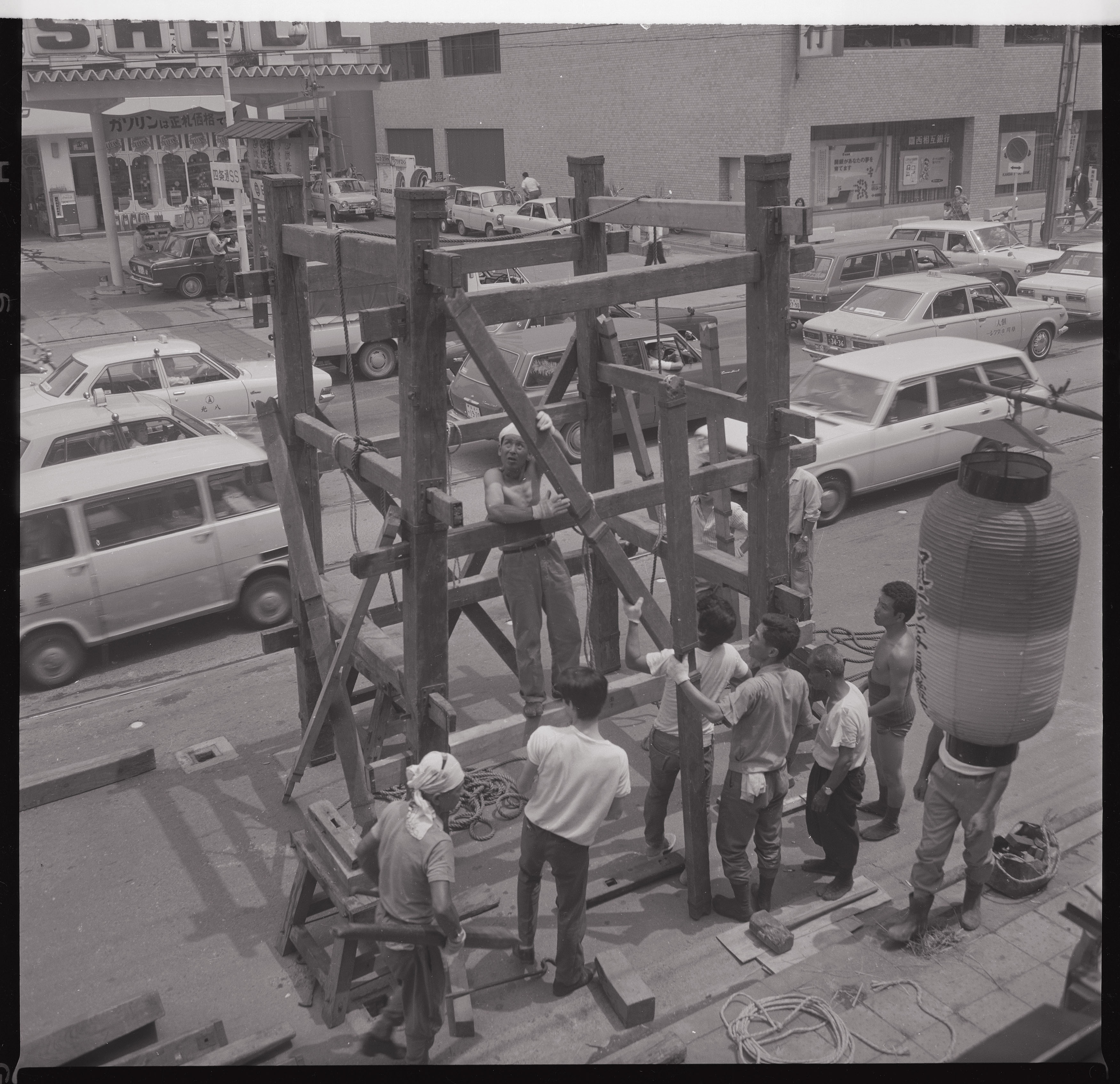 書込み: 祇園会(祇園祭)、月鉾鉾建下層櫓組立(筋違入れ)其三十八