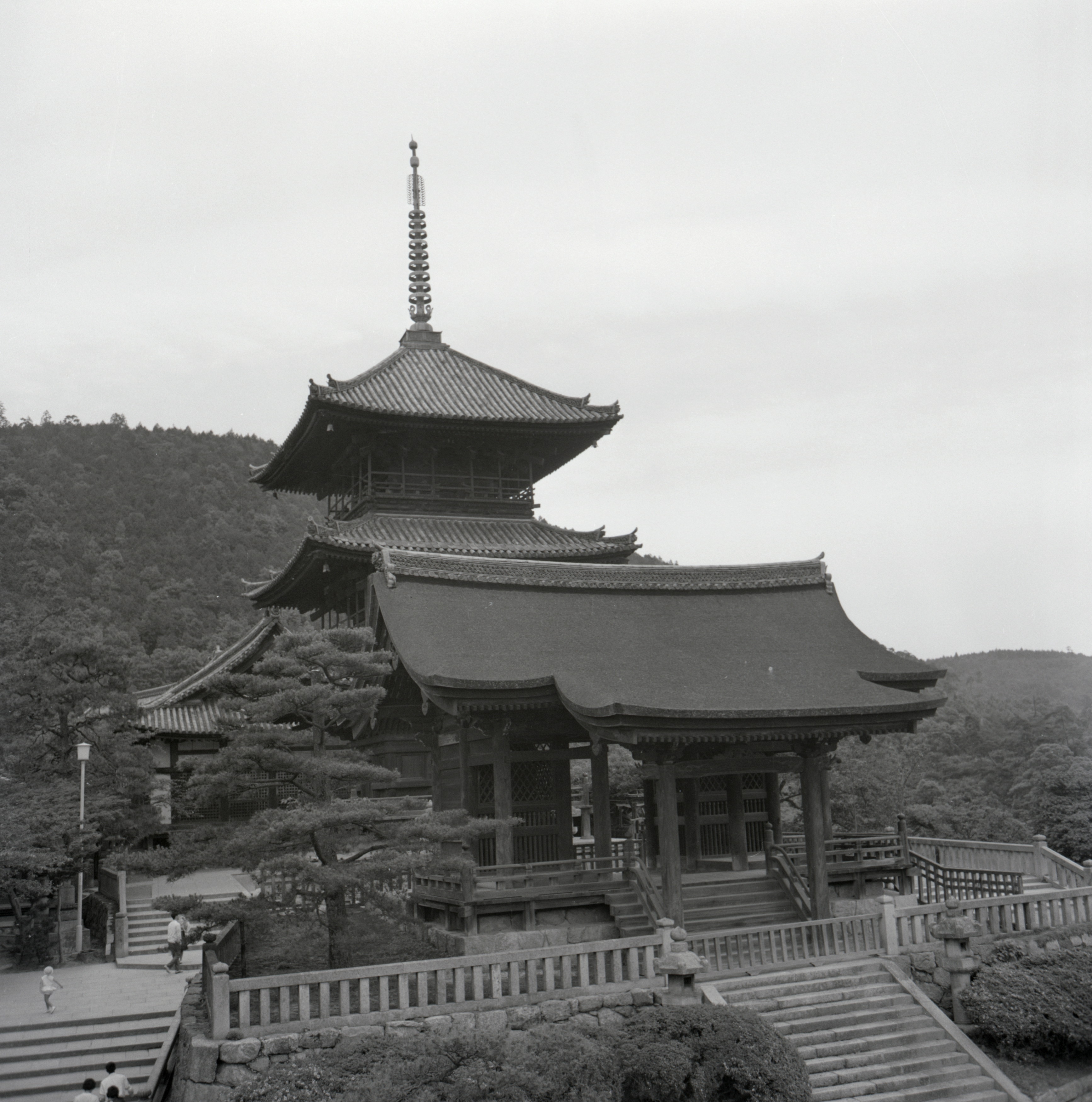 書込み: 清水寺西門・塔婆(三重塔)西面(楼門軒の辺より)