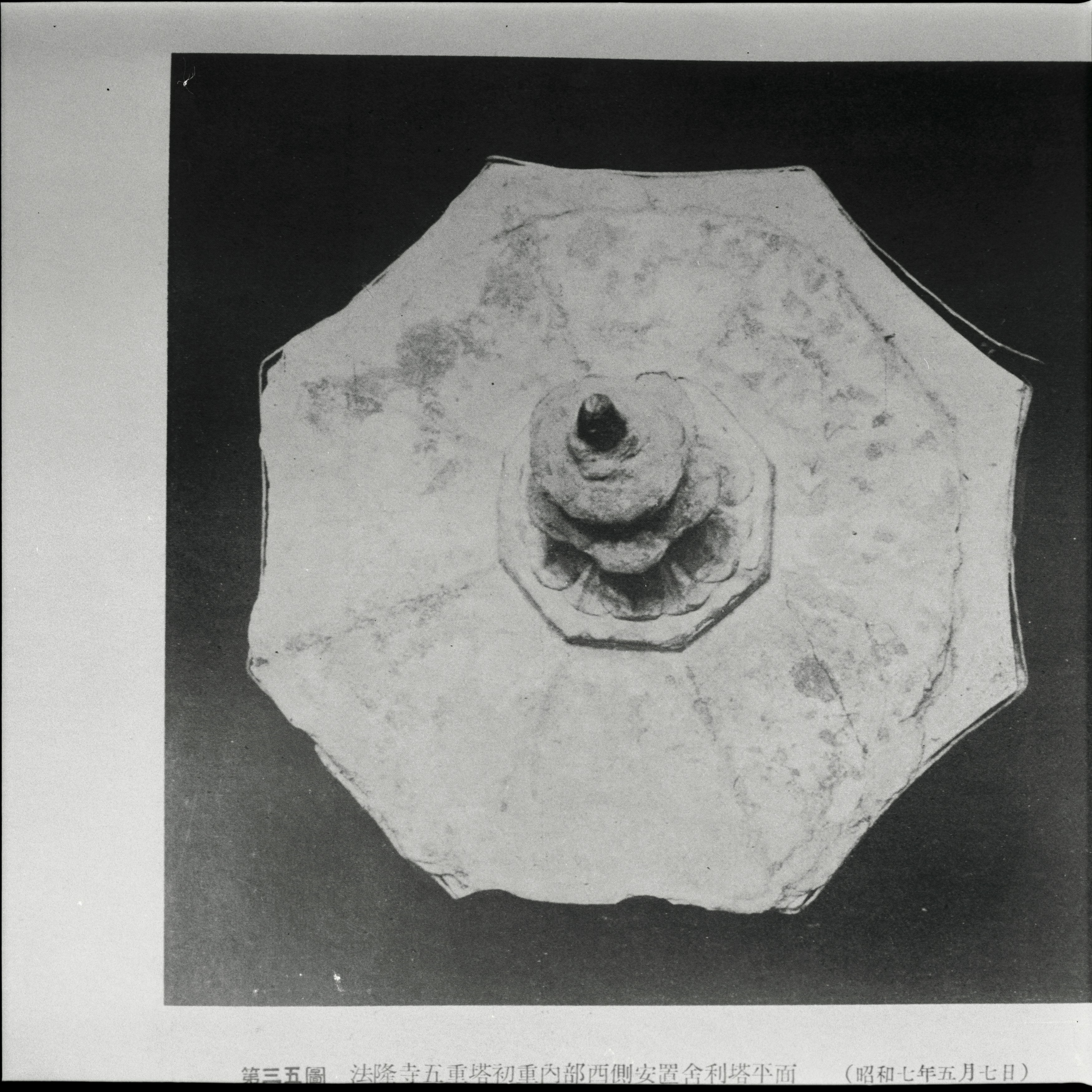 書込み: 法隆寺五重塔(五層塔婆)西面舎利塔見下ろし(『日本建築史図録:飛鳥・奈良・平安』昭和八年十二月、図版複写)