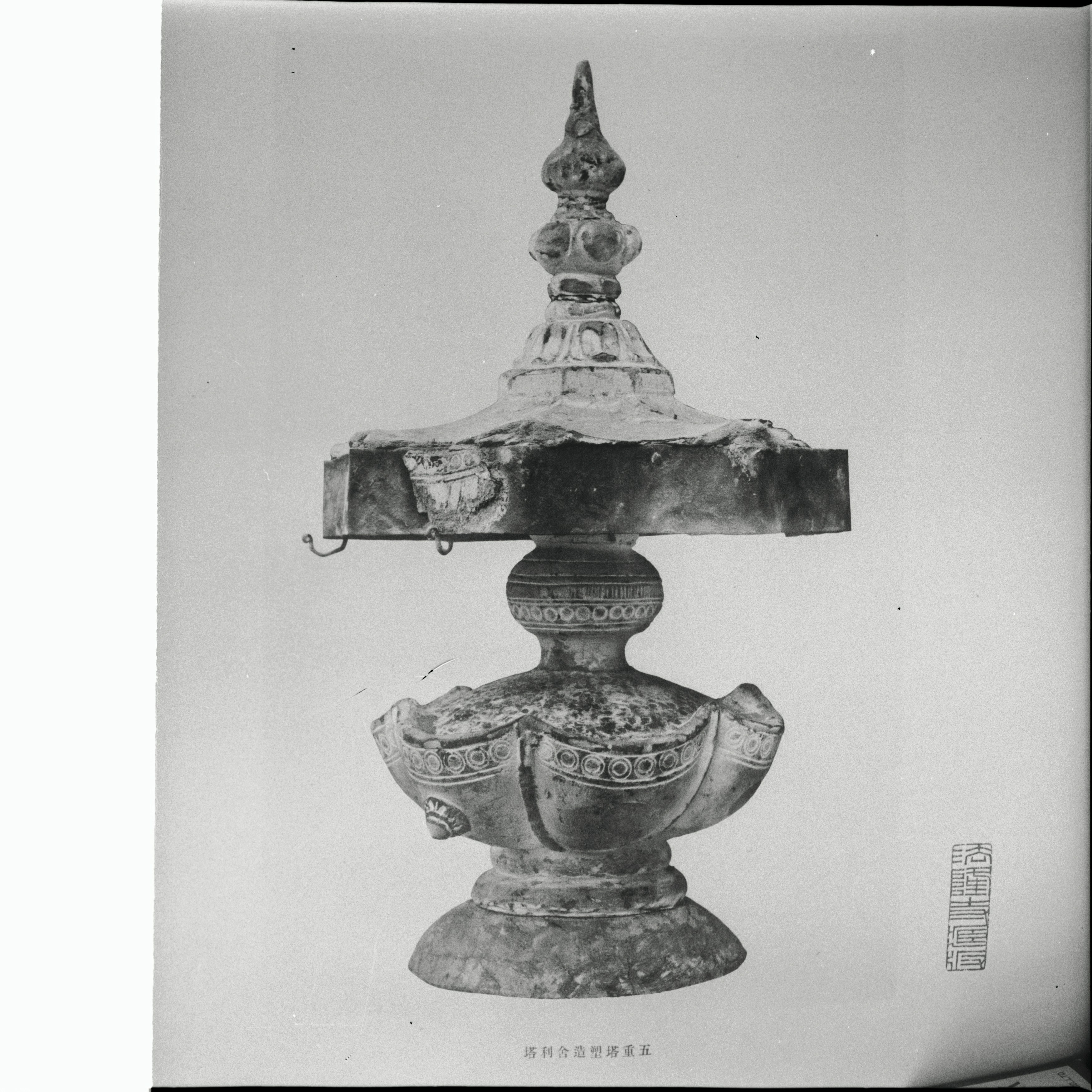 書込み: 法隆寺五重塔(五層塔婆)西面舎利塔(『法隆寺大鏡』第八冊、大正三年六月、写真複写)