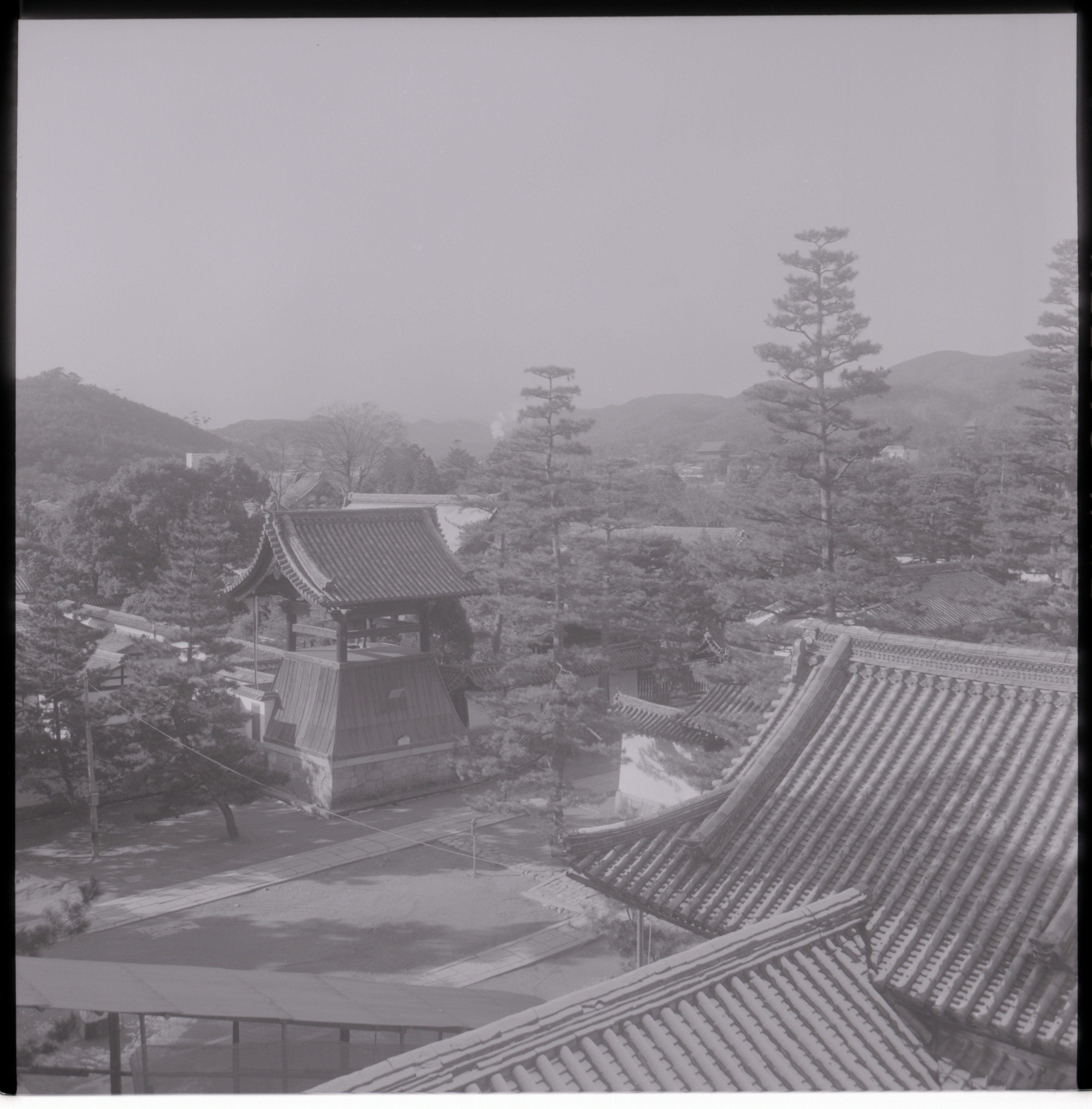 書込み: 妙心禅寺(妙心寺)黄鐘調鐘楼、寝堂等(法堂上簷軒足場前端より)