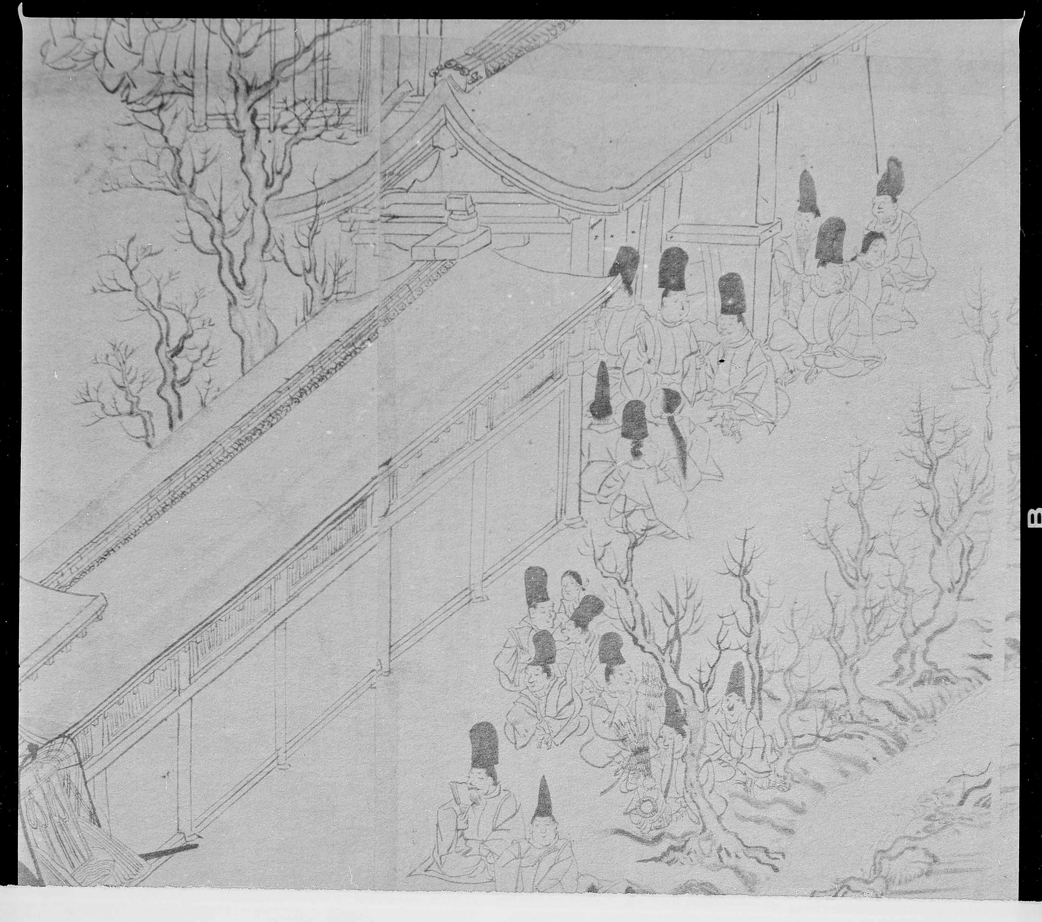 書込み: 田中本年中行事絵巻(複写)十二巻三(四脚門・廻廊)