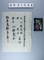 かわせけいこめいめいじょう 川瀬恵子命名状 【贈】川瀬 恵子 1138-0003 |