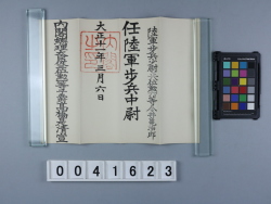 【作成】内閣総理大臣従三位勲一等子爵 高橋是清【使用】陸軍歩兵少尉正八位勲六等 今井亀治郎