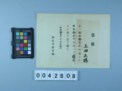 しょうじょう:せいきんにつき 賞状:精勤につき 【贈】大塚 隆② 1189-0084 |
